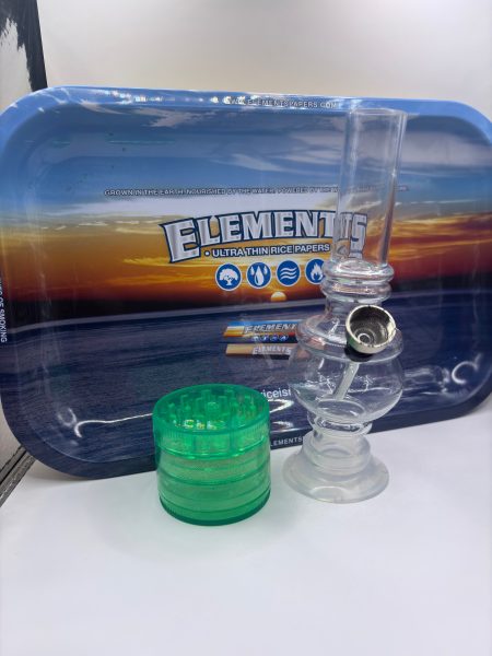 Set de mini bong acrílico con moledor y bandeja element para enrolar
